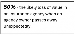 In almost every scenario, the unexpected passing of an agency owner will have a profoundly negative impact on the value of an agency.